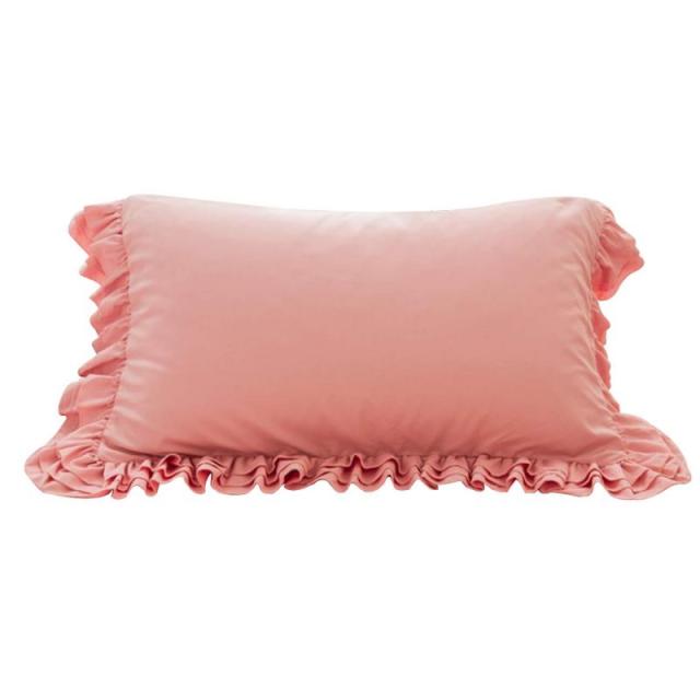 枕カバー 75×50cm(70x50cmも可) 無地 封筒式 北欧 ピローケース 三層フリル付き 結婚式 (ピンク)