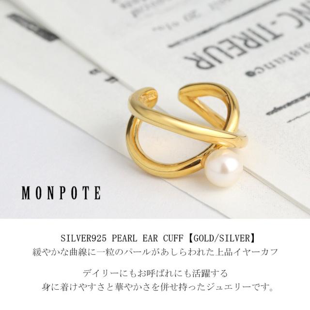MONPOTE 選べる2カラー クロス パール 真珠 イヤーカフ ノンホールピアス 1P 片耳用 シルバー 925 ゴールド 淡水パール 淡水真珠 大人 上品 きれい