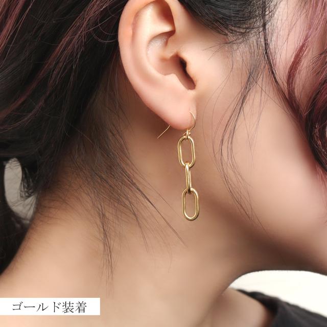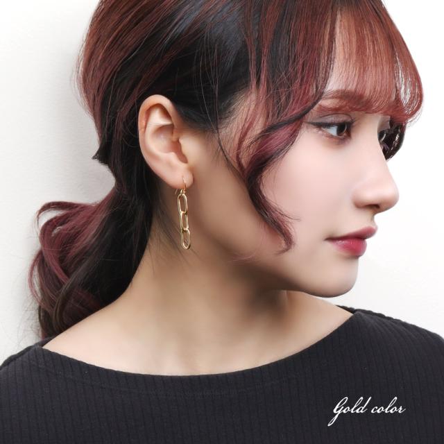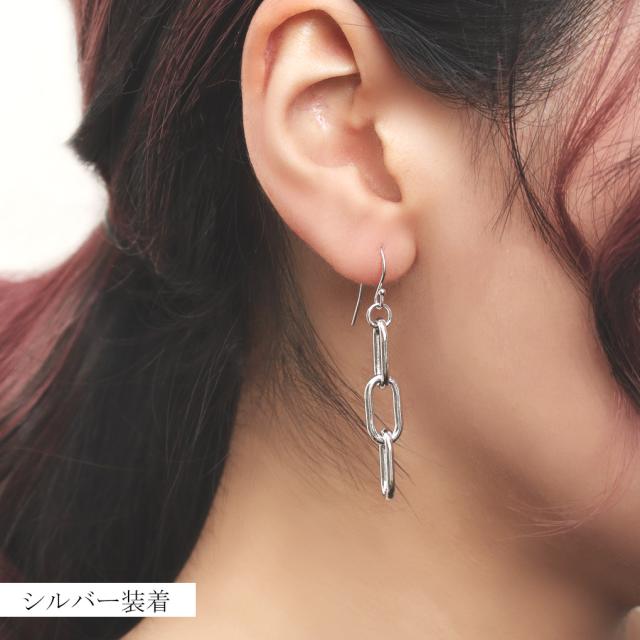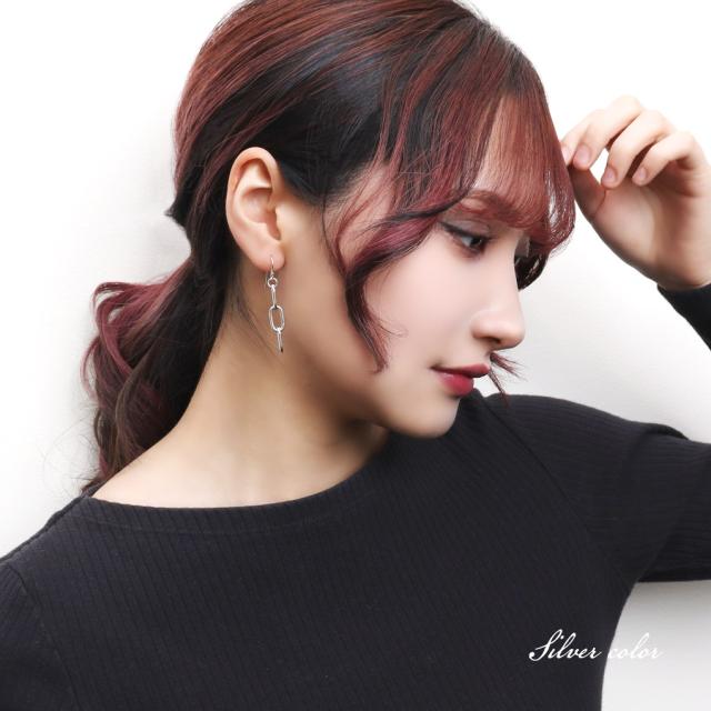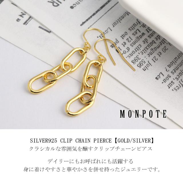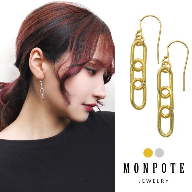 MONPOTE 選べる2カラー クリップチェーン ピアス 2P 両耳用 シルバー 925 ゴールド 揺れるピアス スイングピアス チェーンピアス 鎖 存在感 大人 上品