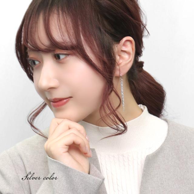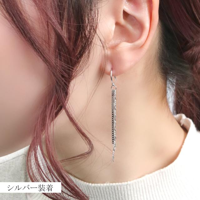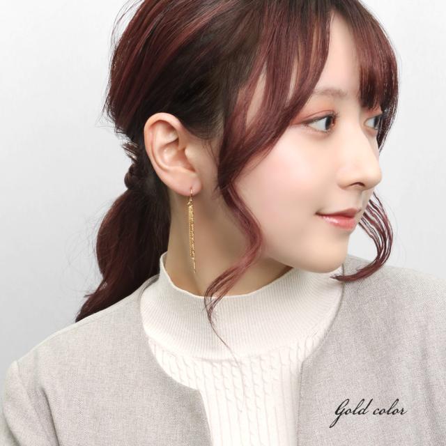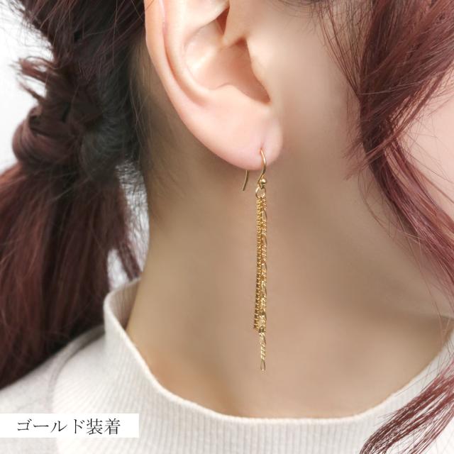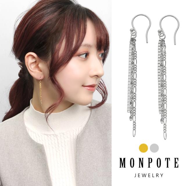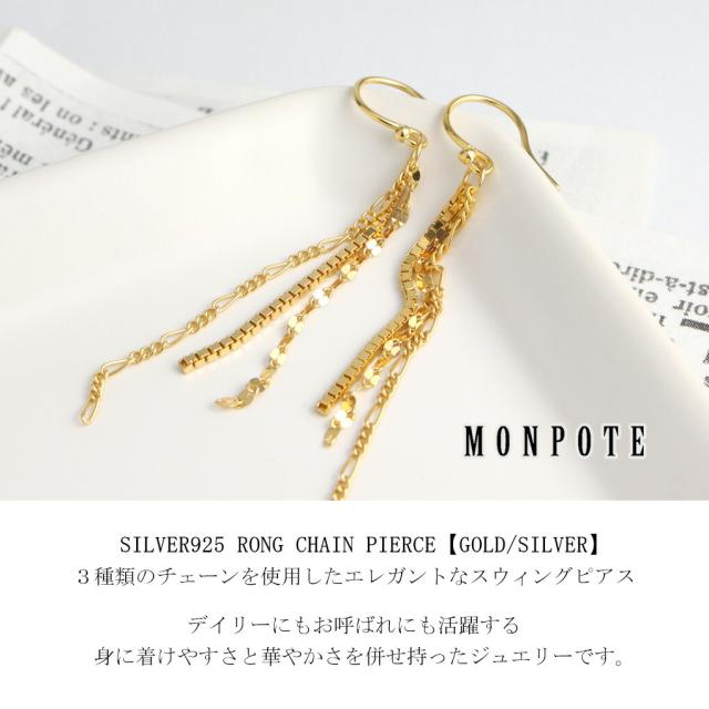 MONPOTE 選べる2カラー デザインチェーン ロングピアス ピアス 2P 両耳用 シルバー 925 ゴールド 揺れるピアス スイングピアス チェーンピアス 鎖
