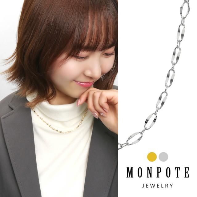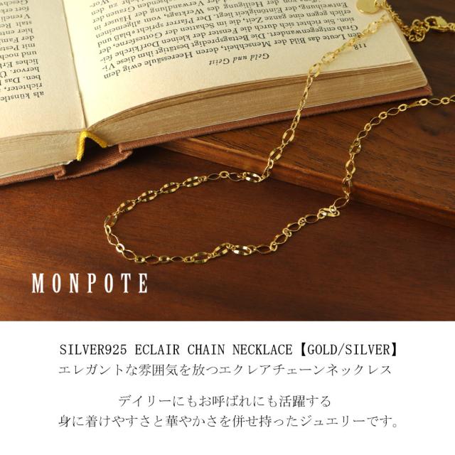 MONPOTE 選べる2カラー エクレアチェーン ネックレス シルバーチェーン チェーン シルバー 925 ゴールド ロジウム チェーンネックレス