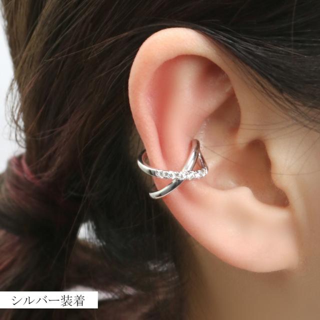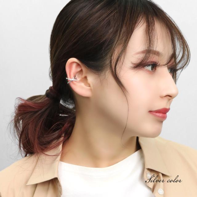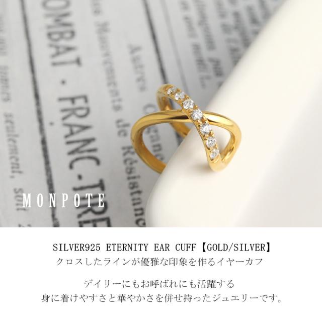 MONPOTE 選べる2カラー クロス エタニティ イヤーカフ ノンホールピアス 1P 片耳用 シルバー レディースイヤーカフ 925 ジルコニア ゴールド 大人
