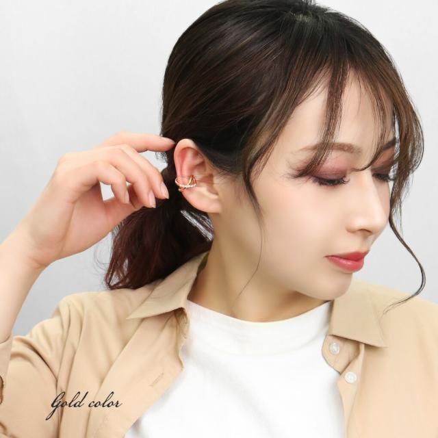 クロスしたラインが優雅な印象を作るイヤーカフ。
