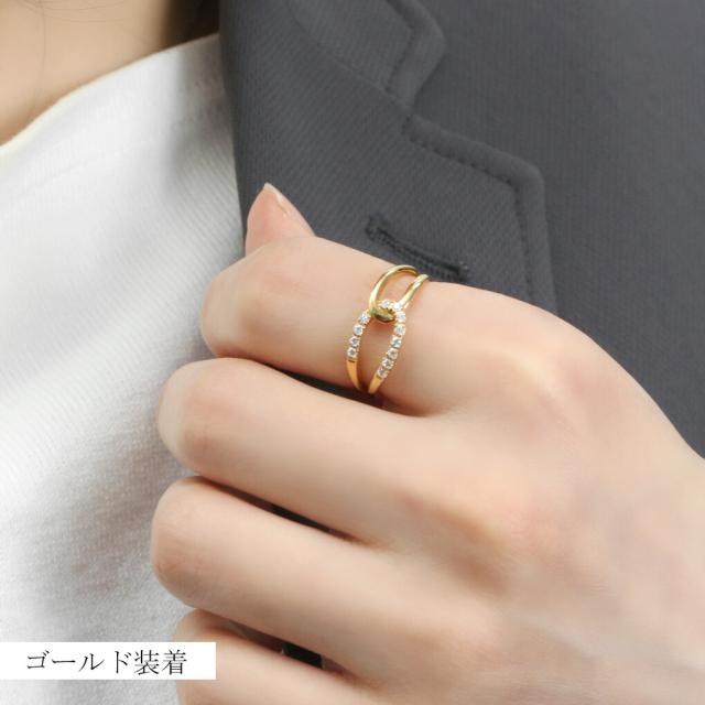 ジルコニアの輝きと抜け感が優雅な印象を作るノットリング。