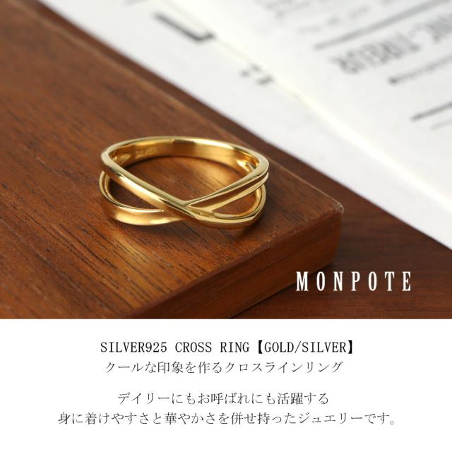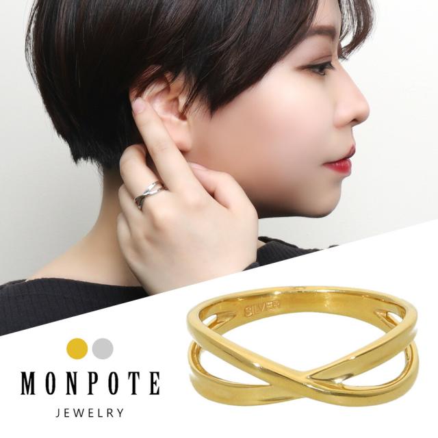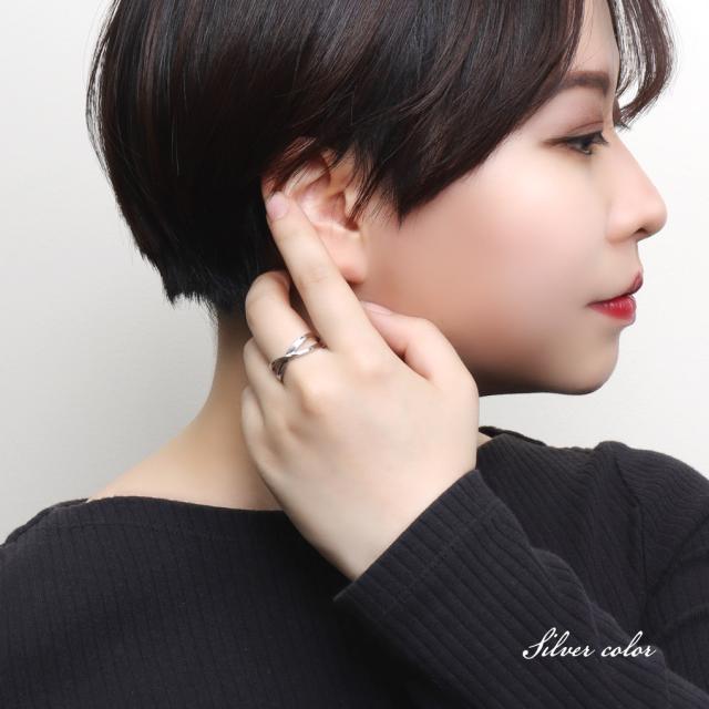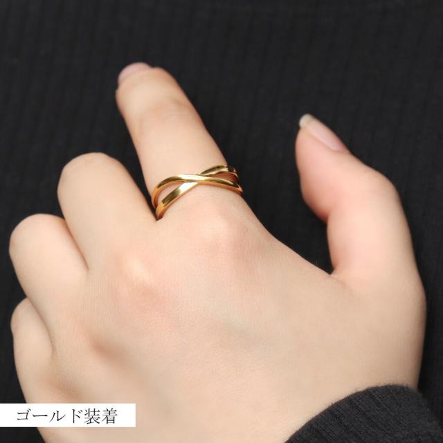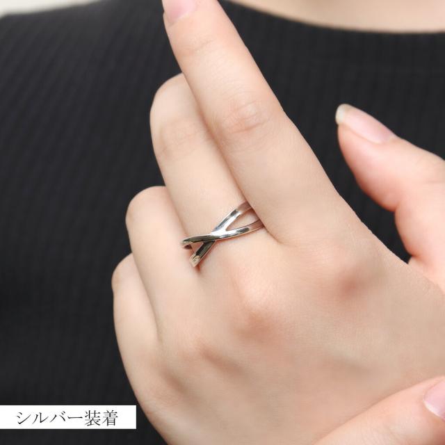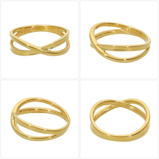 選べる2カラー クロスライン リング 指輪 13号 15号 17号 シルバー 925 ゴールド ロジウム 大きめサイズ 大きいサイズ 大きい 大きめ 太め 曲線