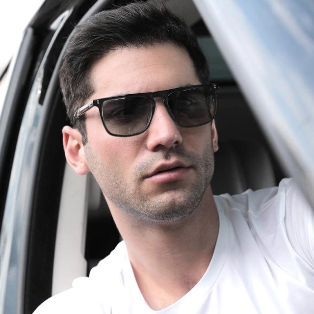 調光偏光サングラス U627 ライトカラー 紫外線で色が変わる デカ 大きい スクエア ウェリントン UVカット メンズ レディース 共用