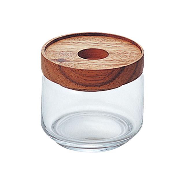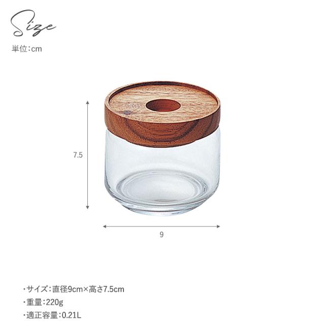 アカシアの木目が美しい蓋と、ガラスを組み合わせた保存容器。お砂糖や塩などの調味料、ハーブやスパイスなどの保存にぴったりのSサイズ。使うたびに棚から出したり戻したりする手間が省ける、見せる収納にうってつけのおしゃれな容器です。
