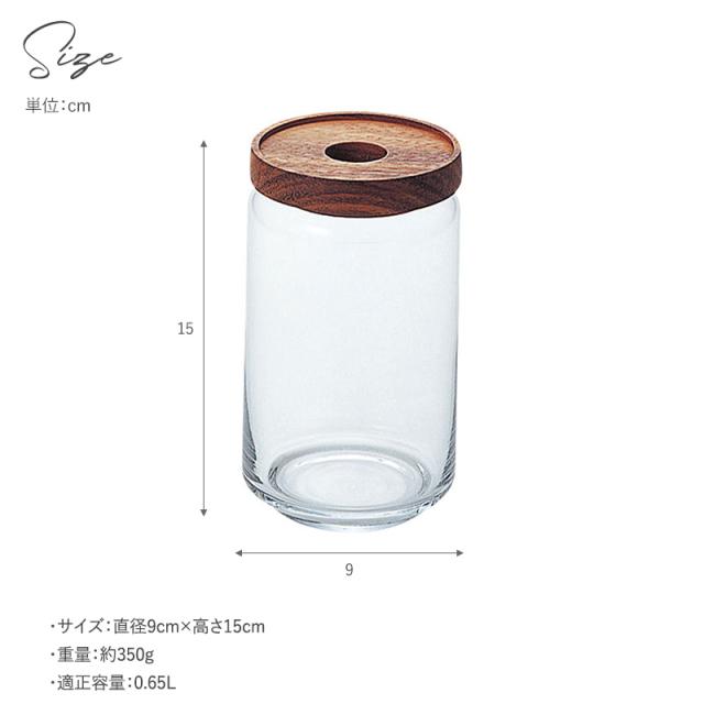 アカシアの木目が美しい蓋と、ガラスを組み合わせた保存容器。グラノーラやシリアル、長さのある乾物の保存にも便利なLサイズ。使うたびに棚から出したり戻したりする手間が省ける、見せる収納にうってつけのおしゃれな容器です。