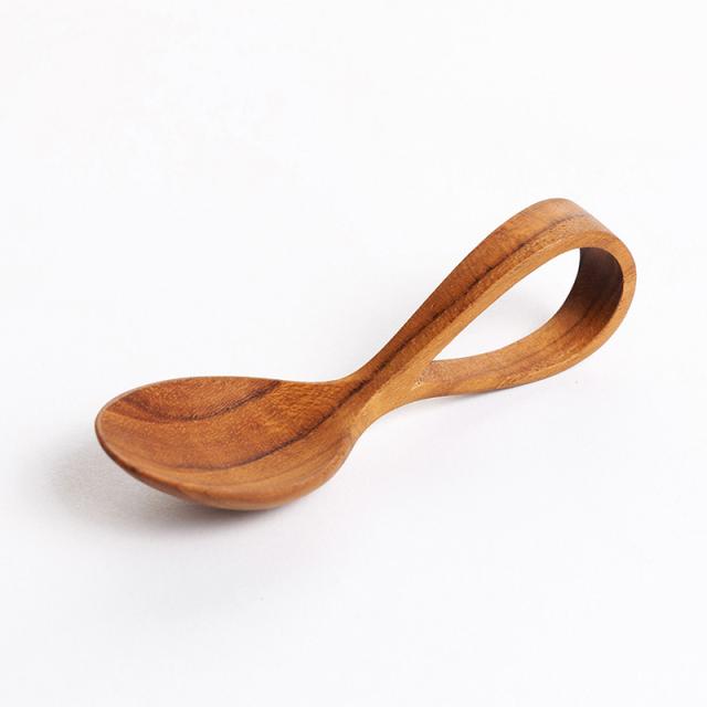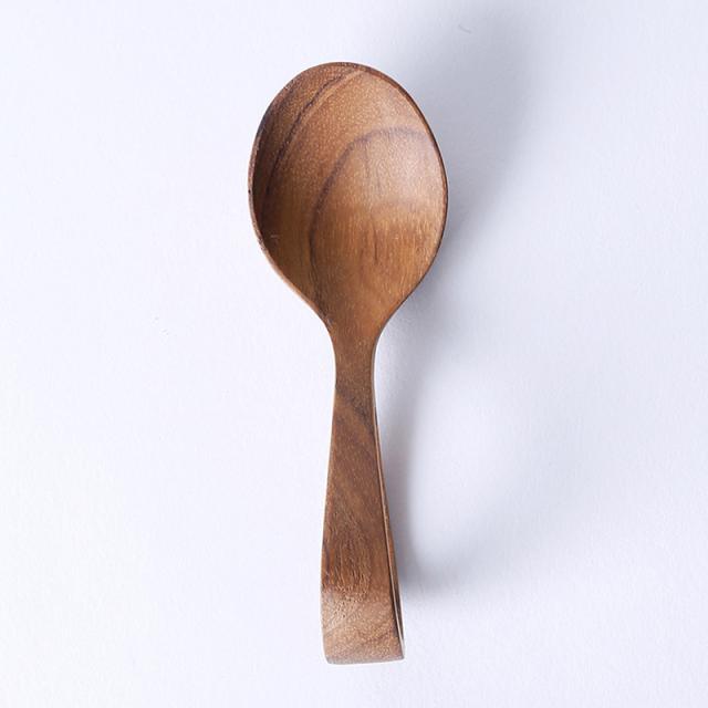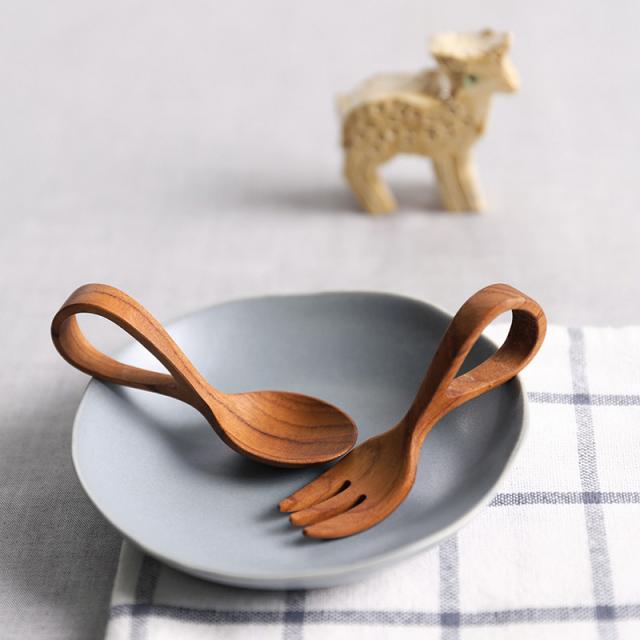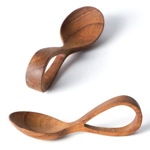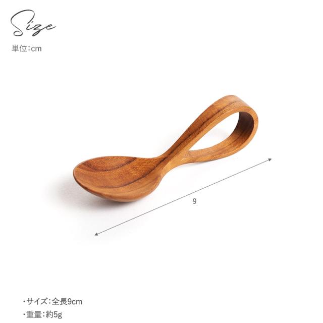 木が持つ自然の美しさ・木目や色・質感を活かした、赤ちゃんにも優しいスプーン。持ち手がループ状で握りやすい形状。