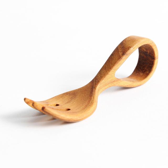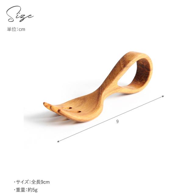 木が持つ自然の美しさ・木目や色・質感を活かした、赤ちゃんにも優しいフォーク。持ち手がループ状で握りやすい形状。