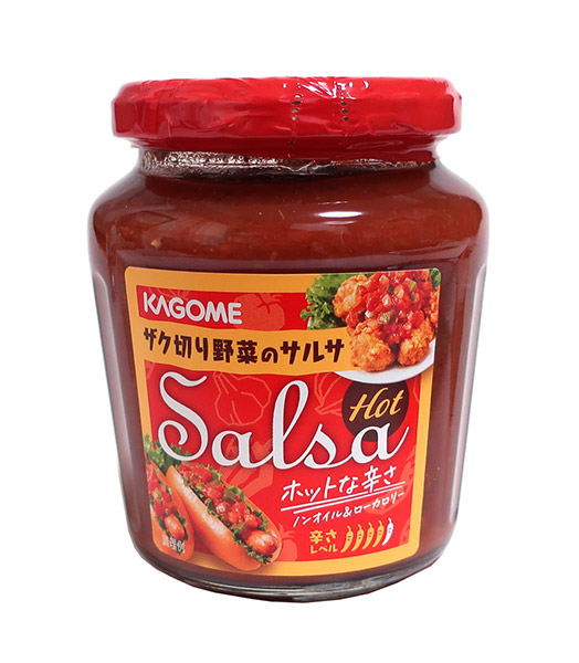 トマト(輸入)、たまねぎ、ピーマン、ハラペーニョ塩漬、ガーリックピューレー、りんご酢、でん粉、香辛料、食塩/香辛料抽出物、クエン酸、塩化カルシウム、(一部にりんごを含む)