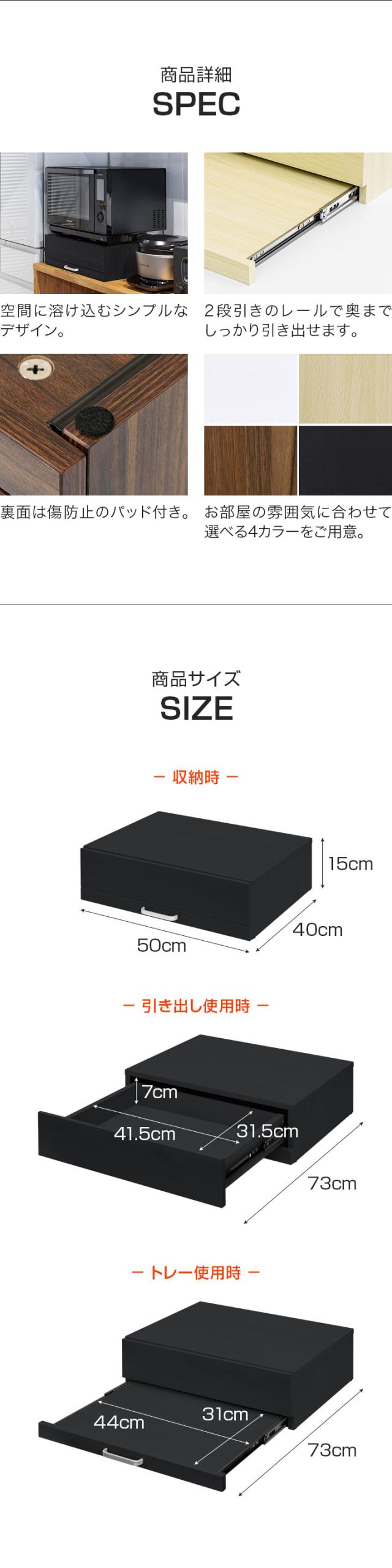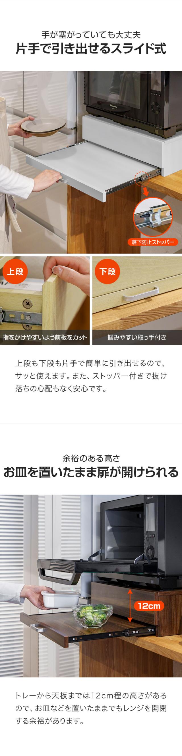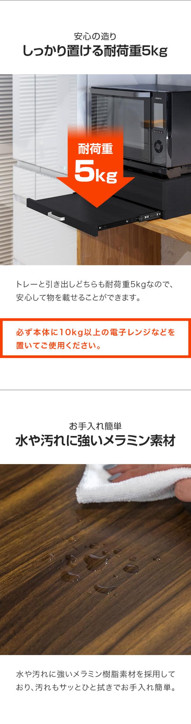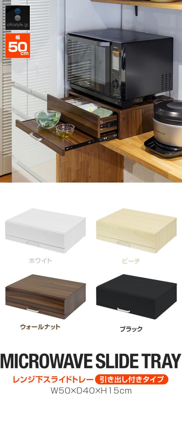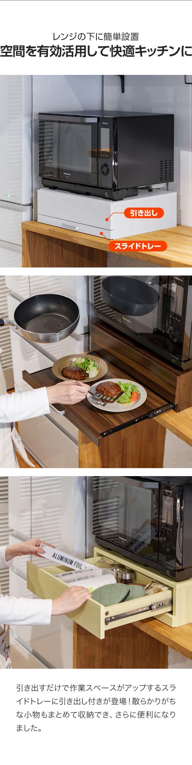 レンジ下 引き出し&スライドテーブル レンジ下収納 スライドトレー 幅50cm×奥行40cm 引出しトレー レンジ置き レンジラック キッチン 引き出し スライド棚 家電台 作業台 卓上 省スペース コンパクト オーブンレンジ 大型レンジ対応 1年保証 送料無料