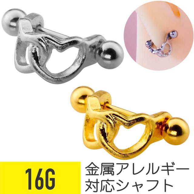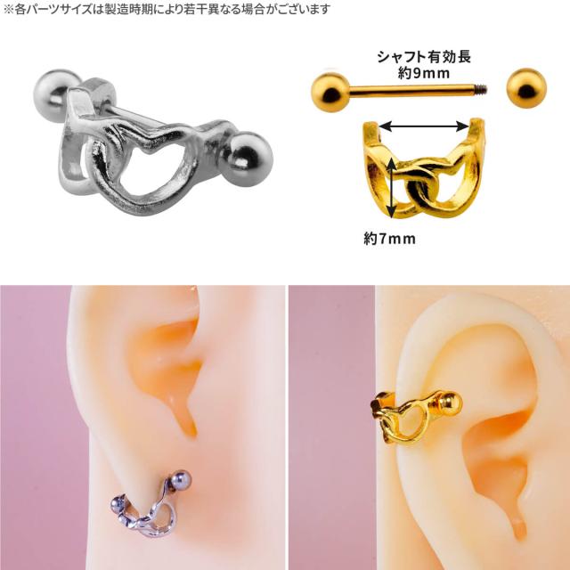 ダブル ハート シールド ピアス ストレートバーベル 16G サージカルステンレス シルバー ゴールド ヘリックス 軟骨ピアス ボディピアス