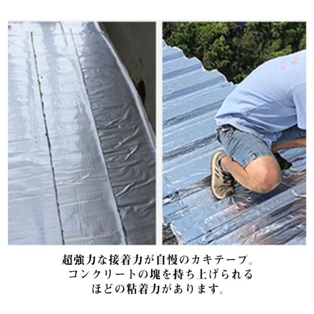 | 貼るだけ簡単なアルミブチルテープ!耐摩耗性に優れ、引っ張られても変形しにくい。 超強力な接着力が自慢のカキテープ。コンクリートの塊を持ち上げられるほどの粘着力があります。 長さを自由に裁断し、裏面の保護シールを剥がしてお貼りたいところに貼ってしっかり押すと完了です。 手触りが柔軟で凹凸面への対応力も向上ていて、カーブや凹凸のある場所でもピッタリと貼れます。 特殊加工により防水・耐熱・難燃・防音・防振・防湿・絶縁等、性能に優れていますので、様々なシーンでご利用いただけます。 家の水漏れ・屋根のひび割れ・ベランダの水漏れ・キャンピングカー・パイプ・地下室・トイレ・内装工事・コンクリート・瓦・タイル・金属等水漏れやひび割れなど困ったときの強い味方。 | |