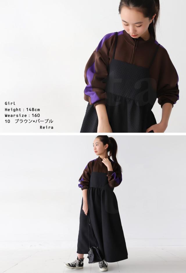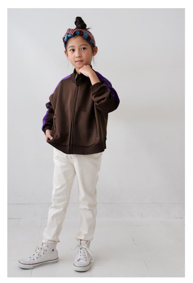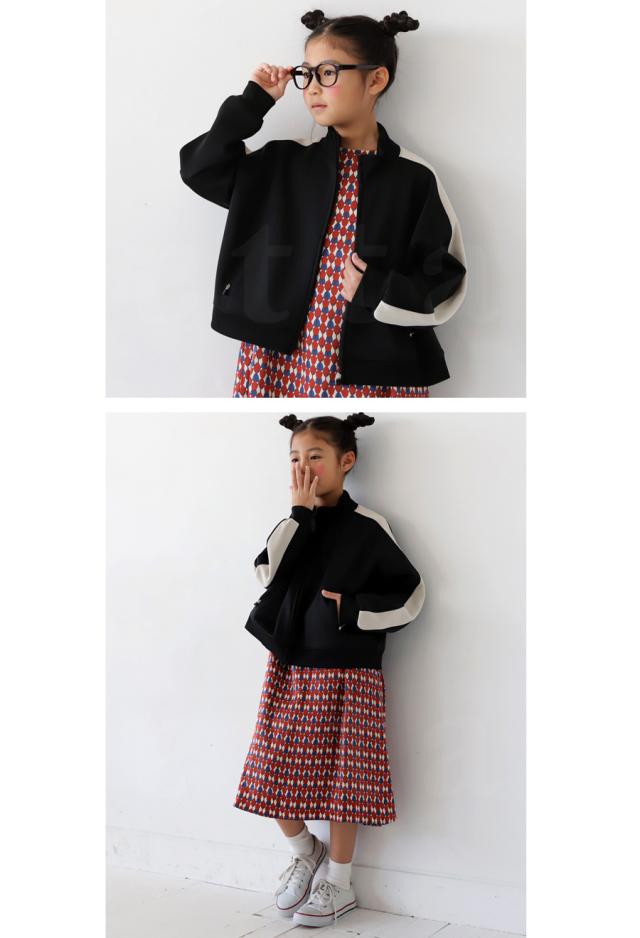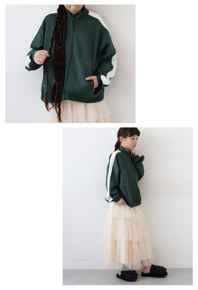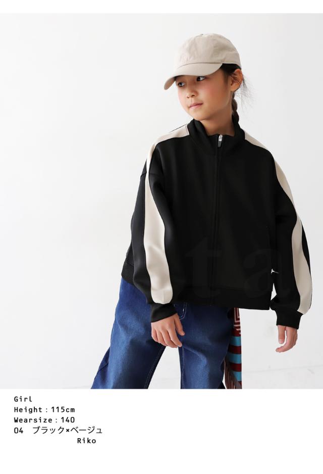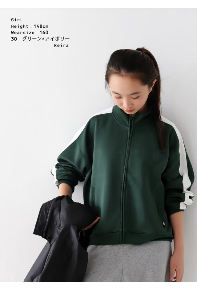 tya-00069j キッズ 子供服 男の子 女の子 ジュニア 高学年 中学生 中高生 長袖 ショート丈 ジャージ 羽織り 配色 ライン 前開き パーカー シンプル スポーティー セットアップ アンティカ