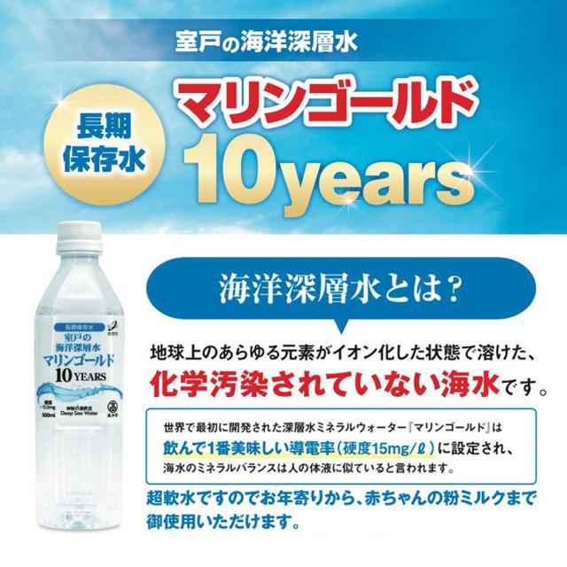 マリンゴールド 500ml 24本セット 10年保存水 海洋深層水 ミネラルウォーター 災害用備蓄 超軟水 非常用 避難 防災 飲料水 断水 ローリングストック 赤ちゃん ミルク お年寄り 備蓄水