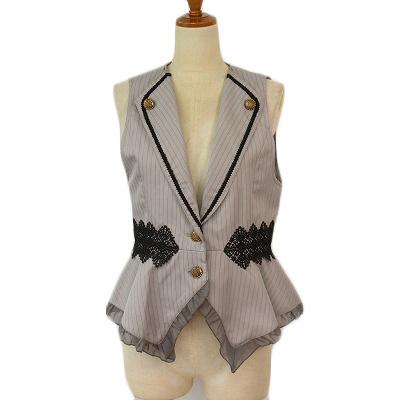 【中古】アクシーズファム axes femme ベスト ストライプ フリル シフォン ブレード M グレー レディース