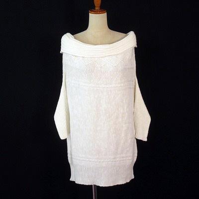 【中古】自由区 オンワード樫山 カットソー ニット オフタートル リネン混 46 白 ホワイト レディース