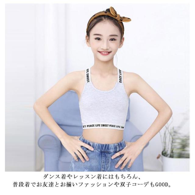 タンクトップ ジュニア 女の子 タンクトップ キャミソール 小学生 キッズキャミソール ハーフトップ スポーツインナー シンプル 英字柄 アンダーウェア ブラトップ コットン