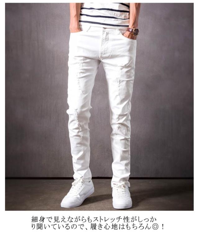 ロングパンツ スキニーパンツ ホワイト ダメージ ジーンズ デニム ストレッチ 白 デニムパンツ メンズ クラッシュ 長ズボン 薄手 春夏 夏 大きサイズ 20代 30代