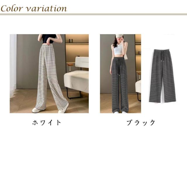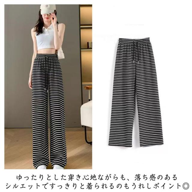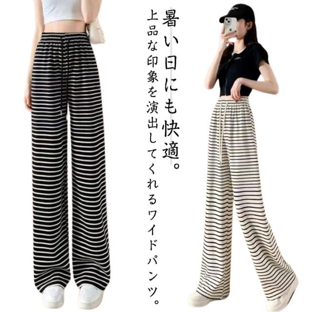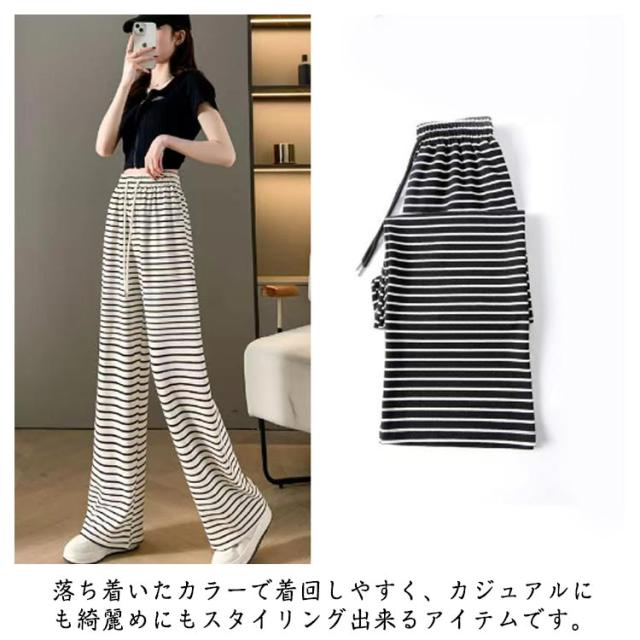 レディース パンツ レディース ワイドパンツ イージーパンツ ロング おしゃれ 長ズボン ボトムス ボーダー ゴム ルームウェア ストレッチ ウエスト ナイトウェア 女性用 通学 体型カバー 部屋着 通勤 散歩