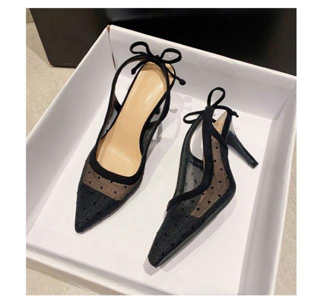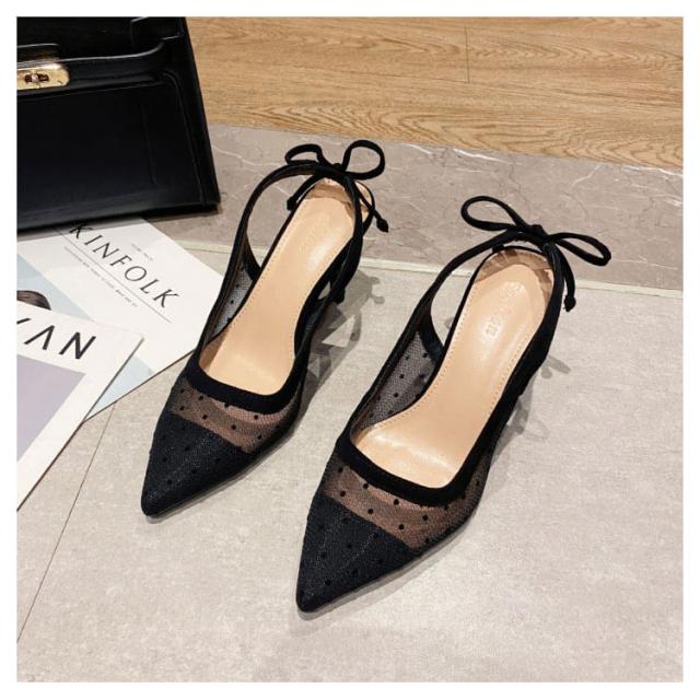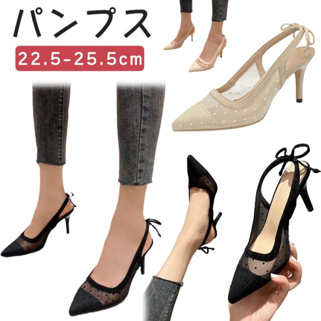 ドット柄 パンプス シースルー ローヒール ストラップ 痛くない オフィス ポインテッドトゥ アンクルストラップ 水玉柄 パンプス とんがり 走れる 通勤 3センチ 通勤 通学 柔らか ドット柄 春 夏