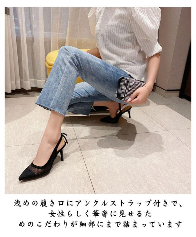 | パンプス 22.5-25.5cm 美脚角度にとことんこだわったポインテッドトゥー 浅めの履き口にアンクルストラップ付きで、女性らしく華奢に見せるためのこだわりが細部にまで詰まっています | |