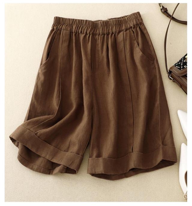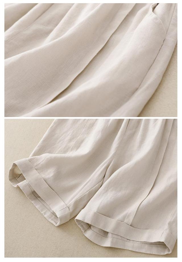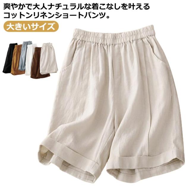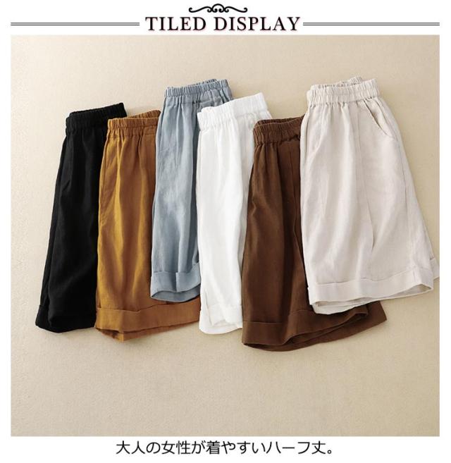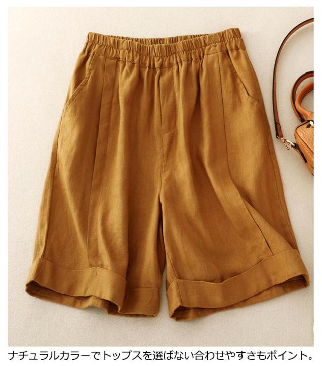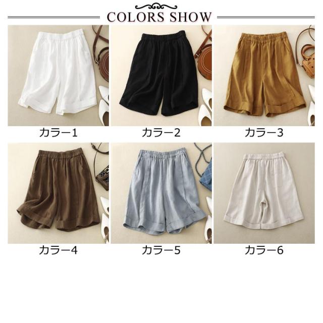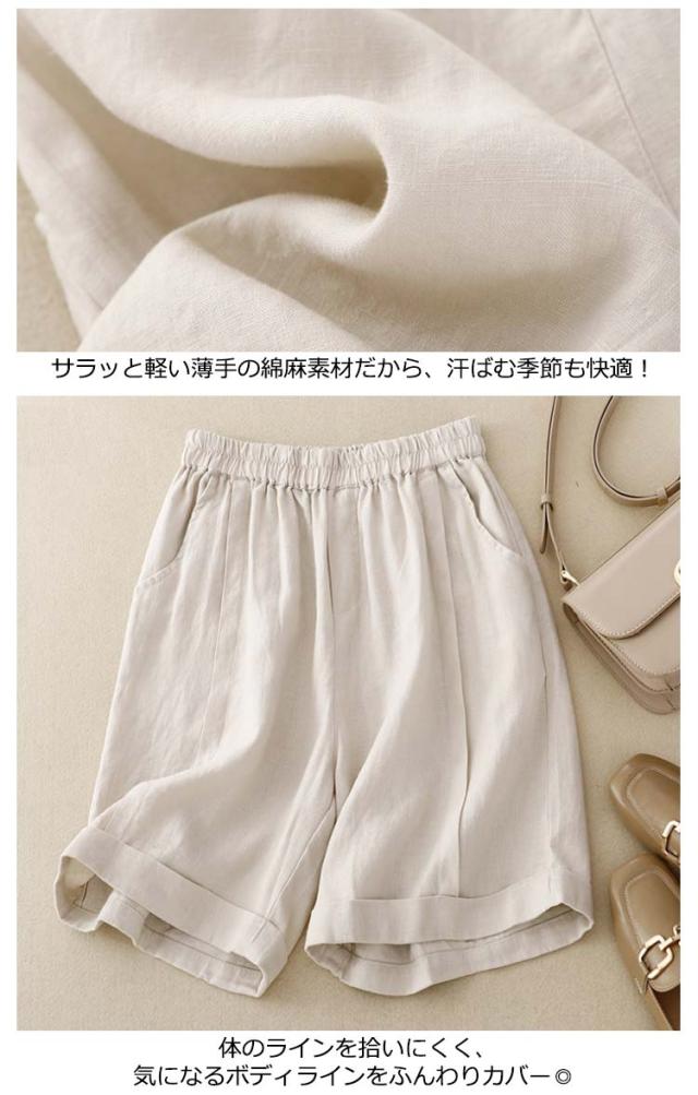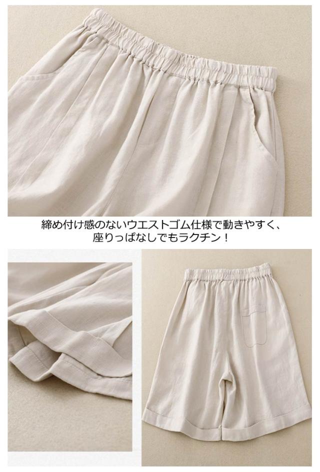 レディース 5分丈 ハーフパンツ コットン リネン ワイドパンツ 春 送料無料ショートパンツ 送料無料ショートパンツ 麻 夏 無地 キュロット ウェストゴム 綿麻 シンプル カジュアル リラックス 部屋着 大きいサイズ ゆるパンツ 薄手