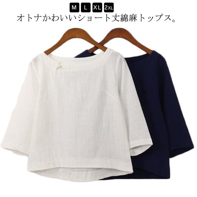 綿麻 シンプル 送料無料 七分袖ブラウス レディース トップス リネントップス シャツ ブラウス 送料無料 ナチュラル コットンリネン ゆったり ショート丈