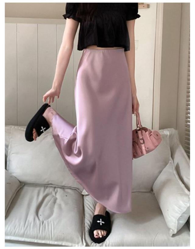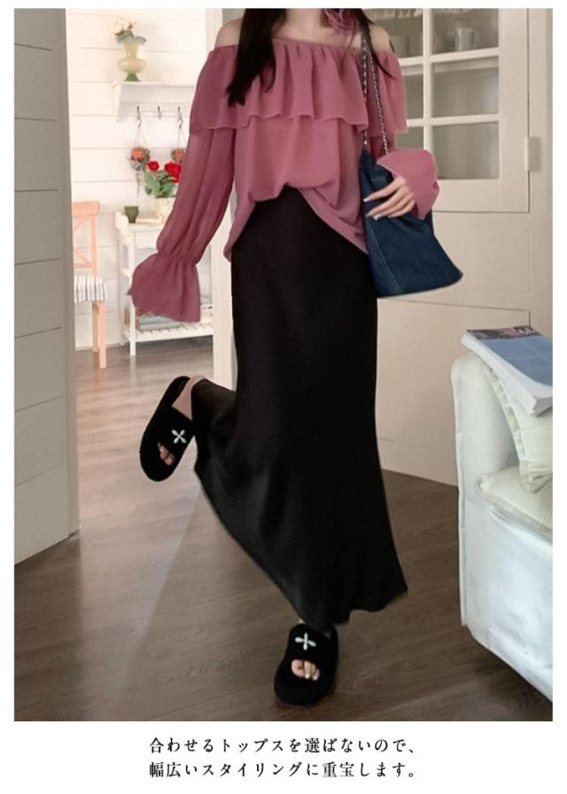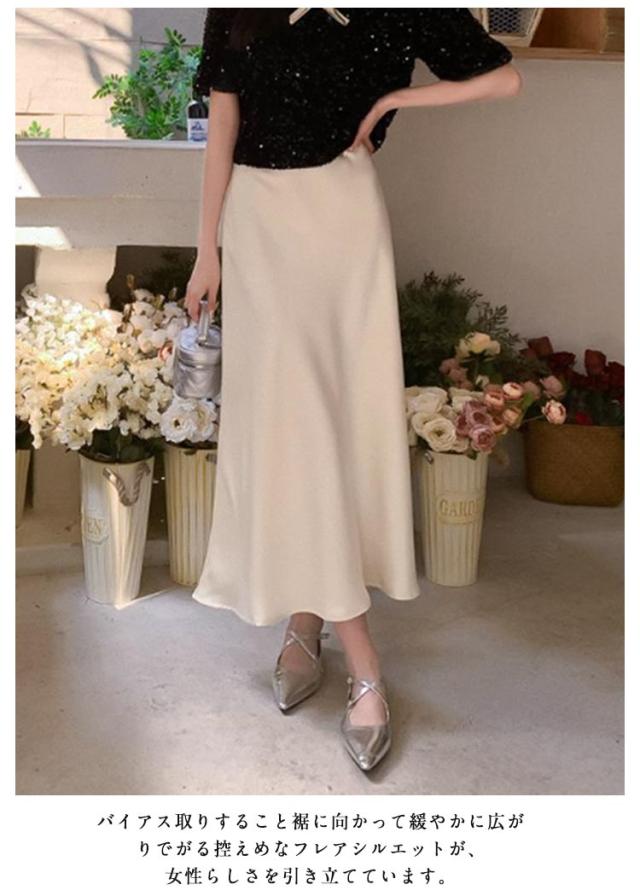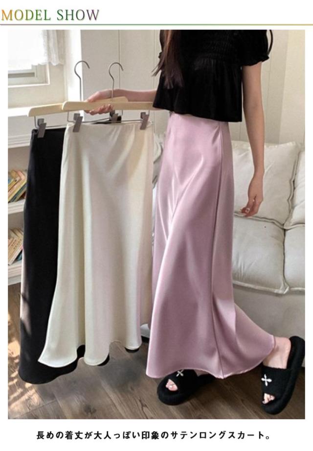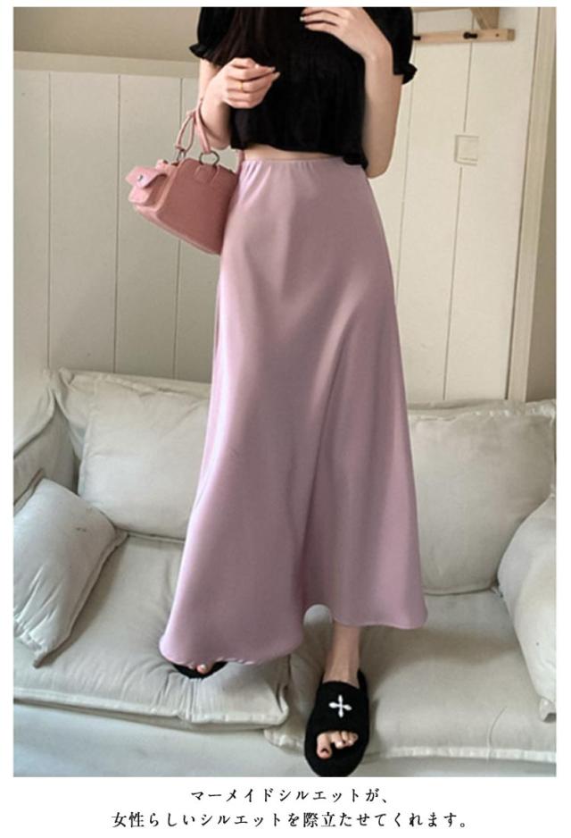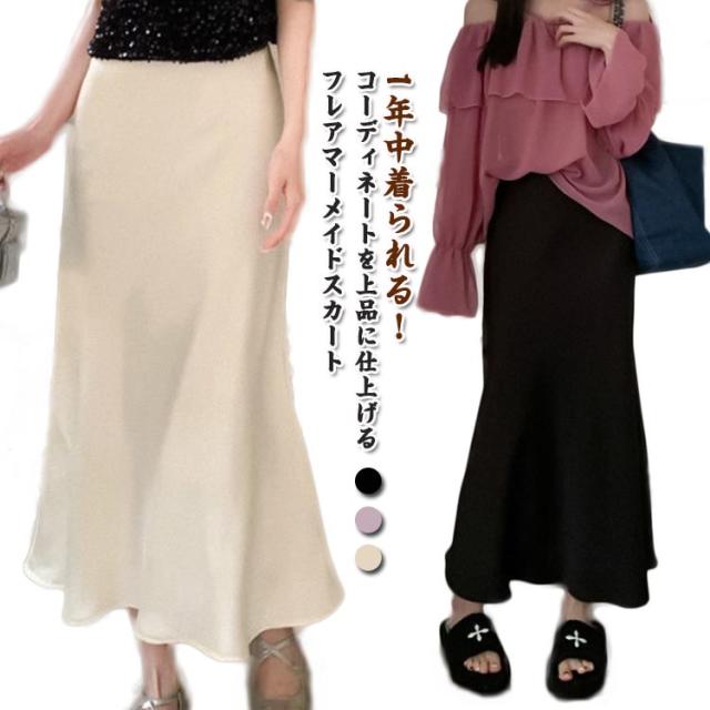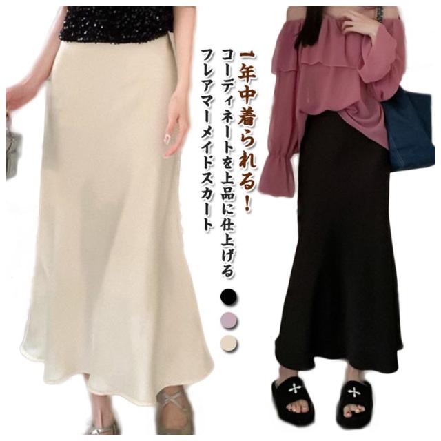 韓国風 落ち感 スカート ロングスカート とろみ 涼感 光沢感 フレア 涼感 マーメイド マーメイドスカート 上品 大人 きれいめ フェミニン 通勤 レディース 冷感 きれいめ エレガント 体型カバー 20代 30代 40代 50代