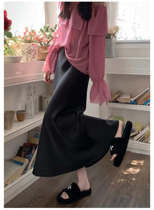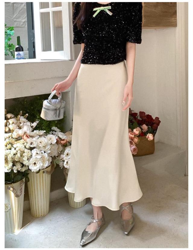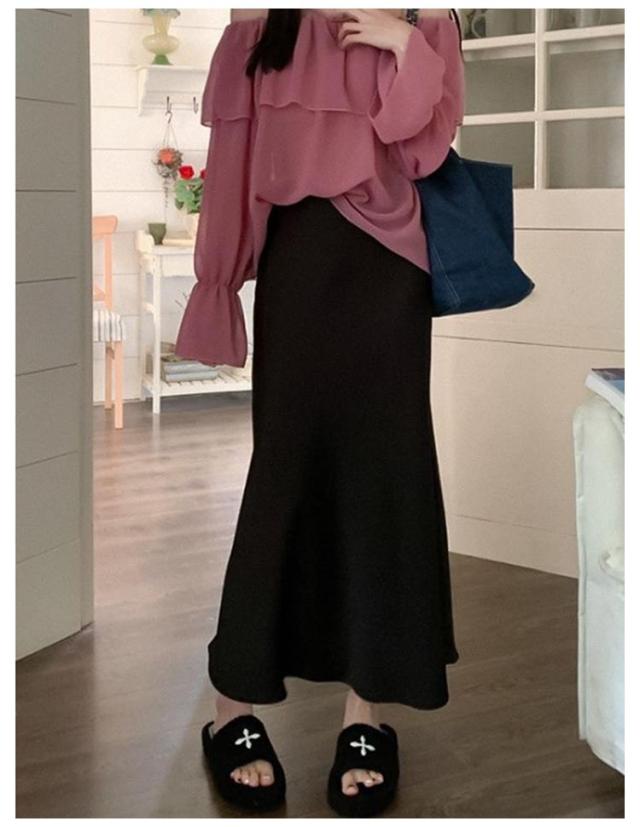 | 1年中着られる!コーディネートを上品に仕上げるフレアマーメイドスカート 長めの着丈が大人っぽい印象のサテンロングスカート。 マーメイドシルエットが、女性らしいシルエットを際立たせてくれます。 マキシ丈なので体系カバーも◎ ウエストゴムなので着脱しやすく、ストレスのない着心地です。 バイアス取りすること裾に向かって緩やかに広がりでがる控えめなフレアシルエットが、女性らしさを引き立てています。 合わせるトップスを選ばないので、幅広いスタイリングに重宝します。 | |