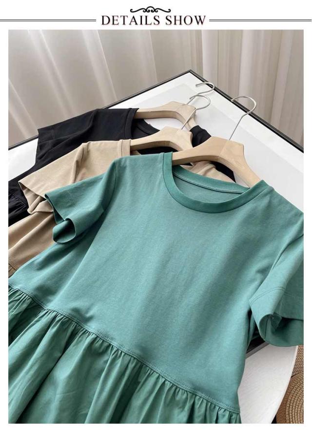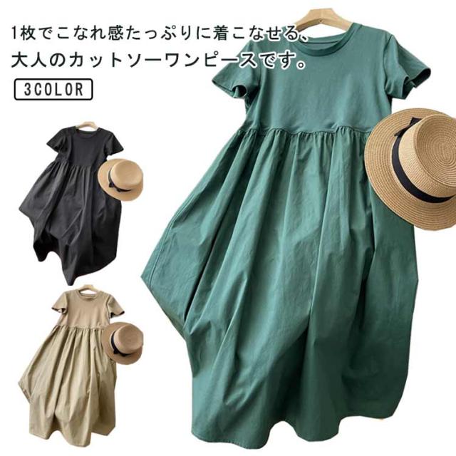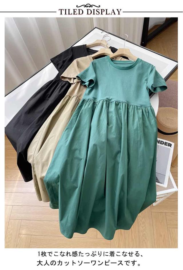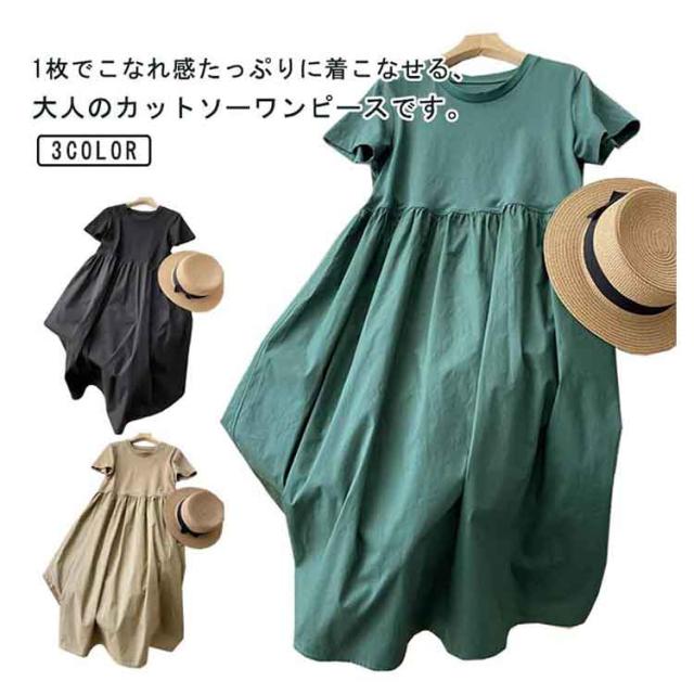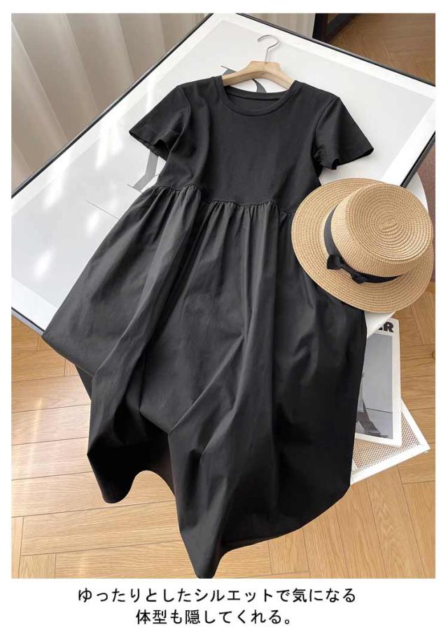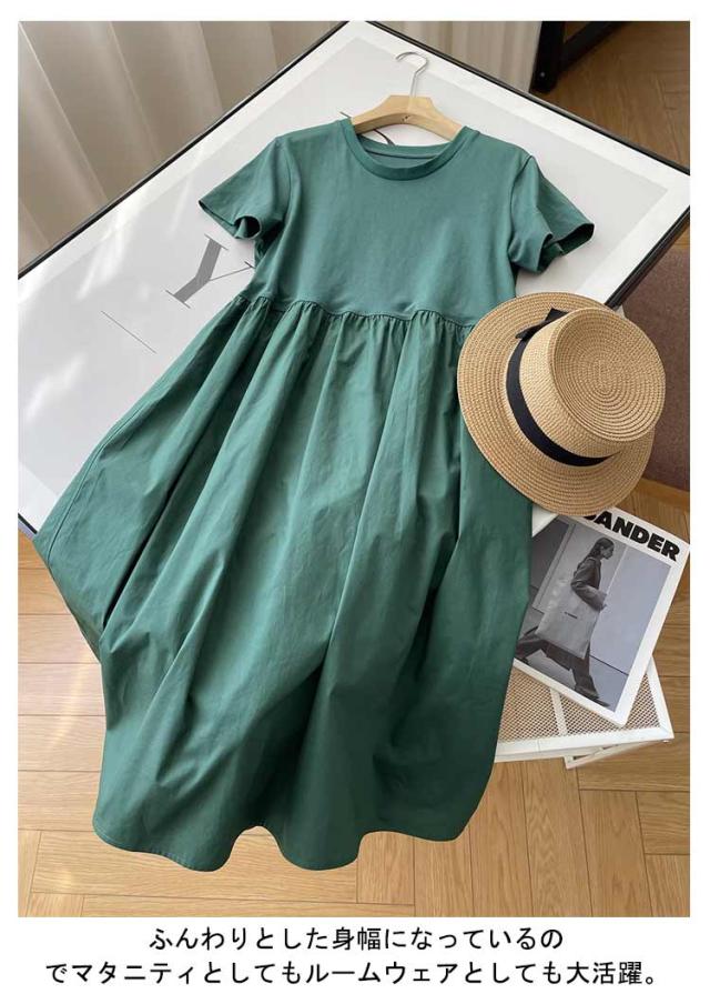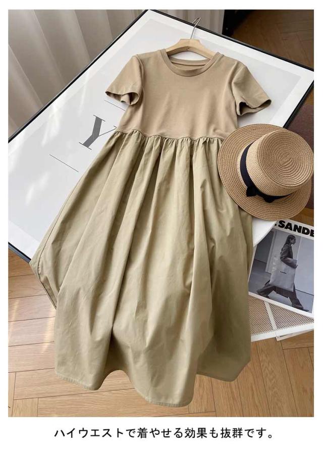 夏 送料無料Tシャツワンピース 普段着 半袖 ロングワンピース 切替ワンピース レティース Aライン 送料無料Tシャツワンピース フレア Tシャツワンピ ワンピース 体型カバー ゆったり カジュアル シンプル 無地 春
