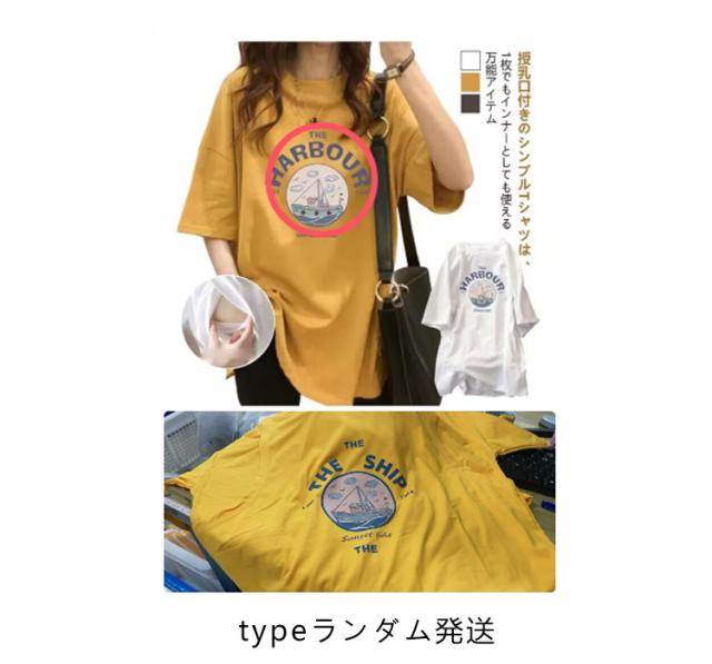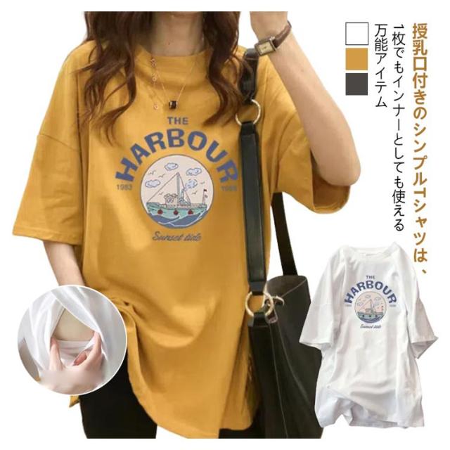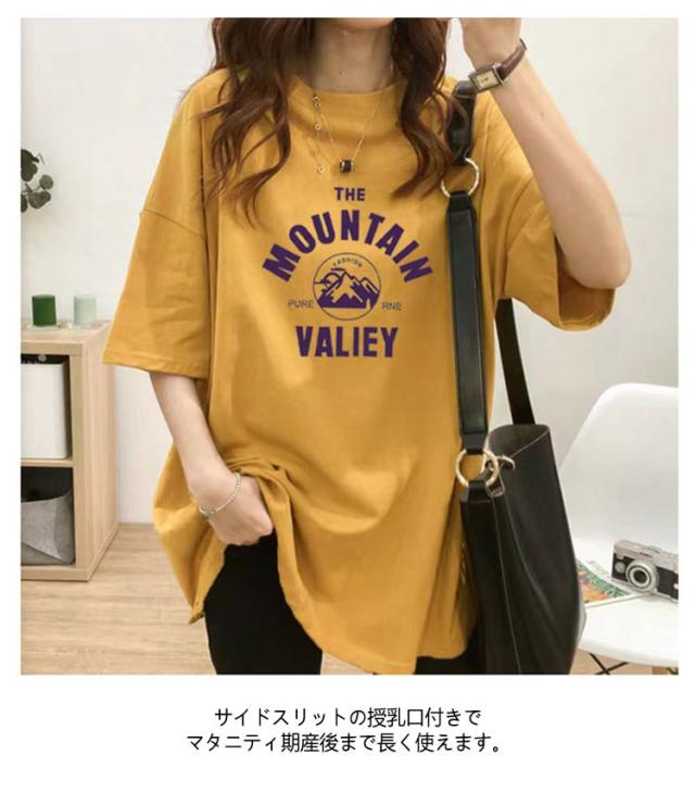 授乳服 マタニティ Tシャツ 半袖 授乳 チュニック 授乳口付き ビッグTシャツ マタニティトップス カットソー 母親 服装 妊娠 出産 産前 産後 夏