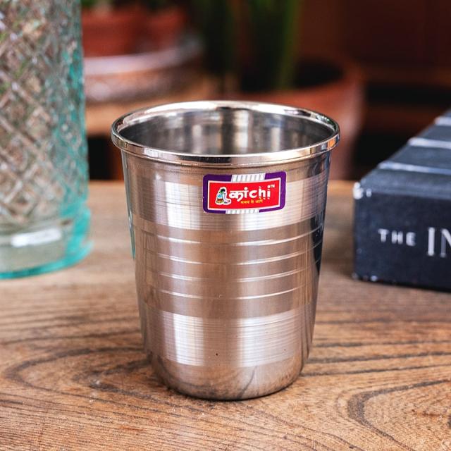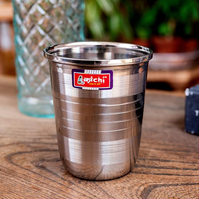 インドに旅行するとよく食堂で水を出す時に出てくるステンレスのコップです。シンプルな一品ですが、これでミルクティーなどを飲めば、すっかりチャイ気分。長く使っていただける一品です。金属製なので飲み物がよく冷え(温まり)、美味しく飲み物を味わうことができます。