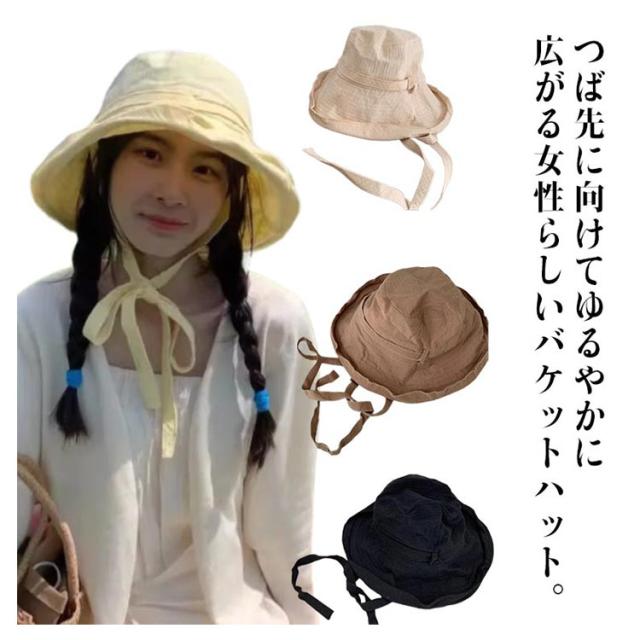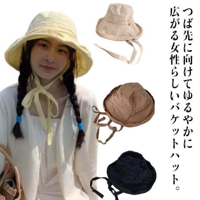 | つば先に向けてゆるやかに広がる女性らしいバケットハット。 女性らしいシルエットが魅力的。ツバ広で日焼け対策、顔をしっかりとカバー! 軽くて丈夫な綿麻素材を使用。肌なじみがよく、使うほどに風合いが増します。 調節可能な顎紐付きで帽子が飛ばされるのを防ぎます。 髪型や被り方によって、サイズの微調整ができます。 小さく折り畳むことが出来るので、気軽に持ち運びが出来るのも嬉しいポイント。 | |