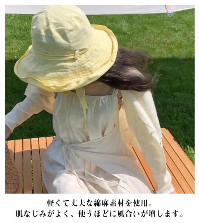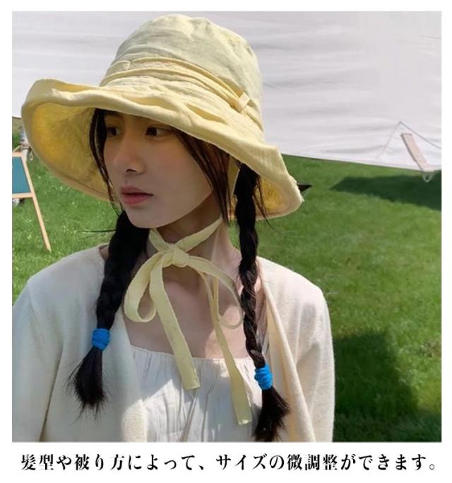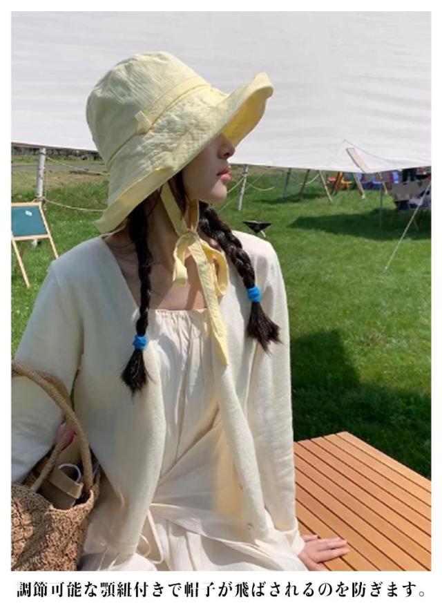 日よけ帽子 UVカット サファリハット 春 レディース つば広 折りたたみ つば広帽子 日よけカバー 綿麻 日焼け防止 夏 バケハ バケハ 帽子 小顔 おしゃれ 紫外線対策 首紐 小顔に見える帽子 夏 遮光 イエロー ホワイト ブラック