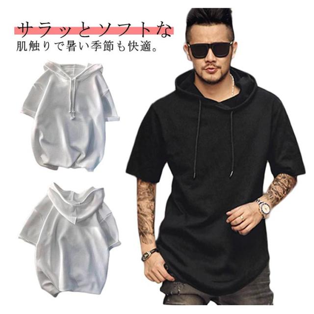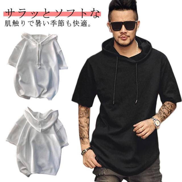 ティーシャツ tシャツ フード付きtシャツ フーディー パーカー パーカーtシャツ シンプル Tシャツ 夏物 無地 トップス メンズ パーカーtシャツ 夏パーカー 涼しい 冷感 薄手 速乾 サマーパーカー 涼しい カジュアル 男性用