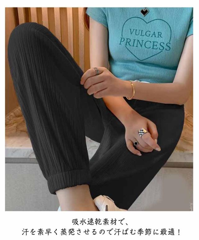 | 夏の暑さ対策にも◎ひんやり接触冷感イージーパンツ。 優れた通気性、肌触りも柔らかく、着心地の良さも抜群。 ウェストゴム、脱着がやすい。 2つのポケットがあります、小物を便利に収納できます。 吸水速乾素材で、汗を素早く蒸発させるので汗ばむ季節に最適! ストレッチのある生地なので、ヨガ、フィットネス、ランニングなどスポーツウェアとしてはもちろん、ルームウェアや寝間着としても大活躍。 | |