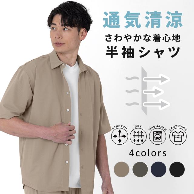 半袖シャツ メンズ 通気性 カジュアル ストレッチ 吸汗速乾 涼しい 春 夏 軽い 薄い 無地 シンプル シャツ イージーケア アーバンスクエア 54375