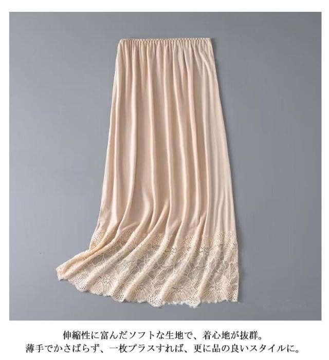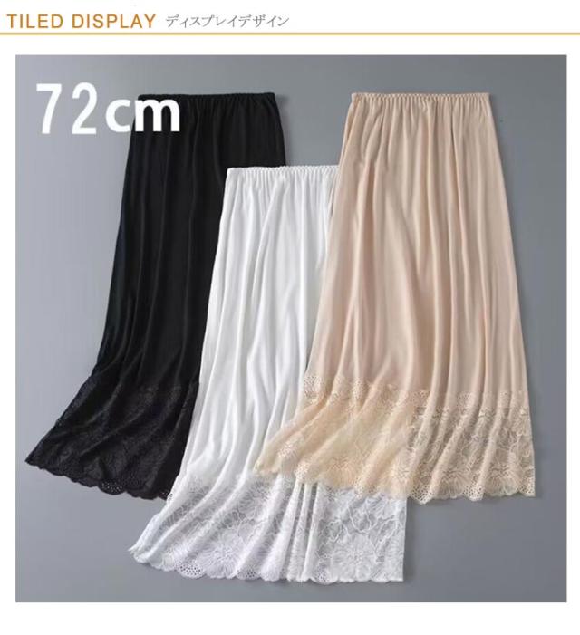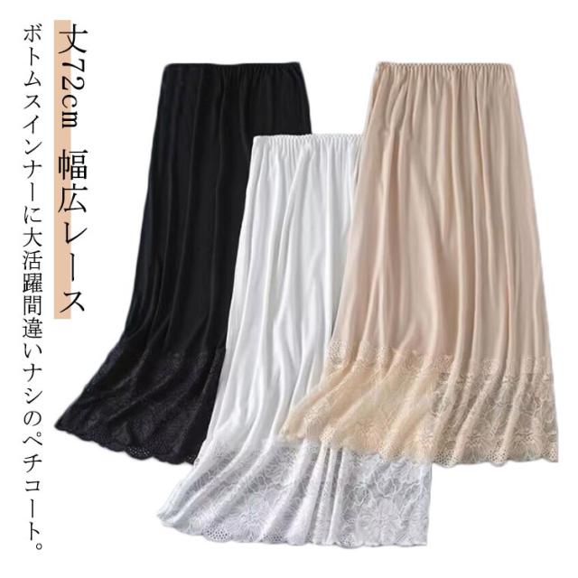 送料無料 レースペチコート ドレスインナー スカート 裾レース ペチコート 丈72cm 透け防止 インナースカート アンダースカート 見せる フォーマル 静電気防止 送料無料 透けない 抜け感 ボトムス 大人 20代 30代