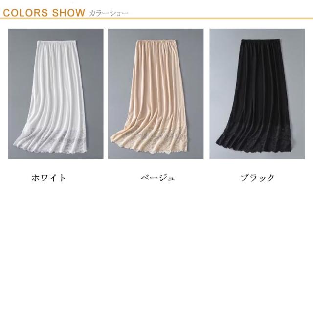 | 丈72cm 幅広レース ボトムスインナーに大活躍間違いナシのペチコート。 裾がレースになっているから見えても可愛く、長さやデザインのアレンジにもぴったり!無地タイプもあります。 ウエストは良く伸びるゴム仕様なので 苦しさもなく、楽ちんにご着用頂けます。 伸縮性に富んだソフトな生地で、着心地が抜群。薄手でかさばらず、一枚プラスすれば、更に品の良いスタイルに。 カラーはお手持ちのアイテムに合わせやすいブラック、ホワイト、ベージュの3カラーをご用意しました。 | |