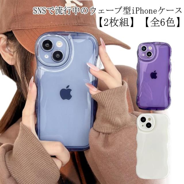 ウェーブ ケース 【2枚セット】iphoneケース iPhone14 【2枚セット】iphoneケース 可愛い 韓国 ケース ケース iphone12 スマホケース うねうね iPhone13 クリア 透明 ケース バブル 波型 なみなみ iPhone15Pro 推し活 TPU おしゃれ