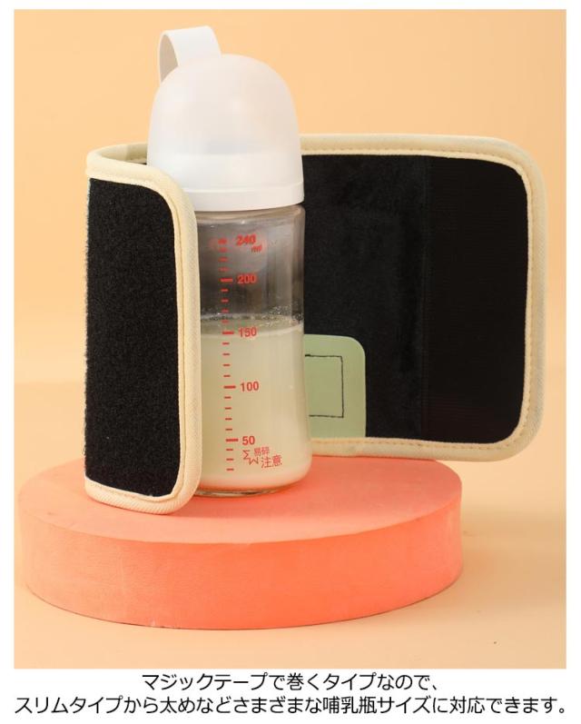 | 35〜55℃の範囲で1度ごとに温度調整可能。 お湯やミルクの飲みごろ温度をキープしてくれるミルクウォーマー、夜中や外出先でとても便利。 哺乳瓶に巻いておくと、発熱フィルムでじんわり温まりあたたかくキープし、すぐにミルクを挙げられるから、授乳期のお子様を持つパパママのお悩みを解消する強い味方。 マジックテープで巻くタイプなので、スリムタイプから太めなどさまざまな哺乳瓶サイズに対応できます。 ガラスボトル、プラスチップ哺乳瓶、缶や紙パックなど多素材に対応します。 軽くてコンパクト、やシガーソケットで給電できるのでご自宅はもちろん、お散歩やドライブなどお出かけ先でも大活躍するミルクウォーマーです。 | |