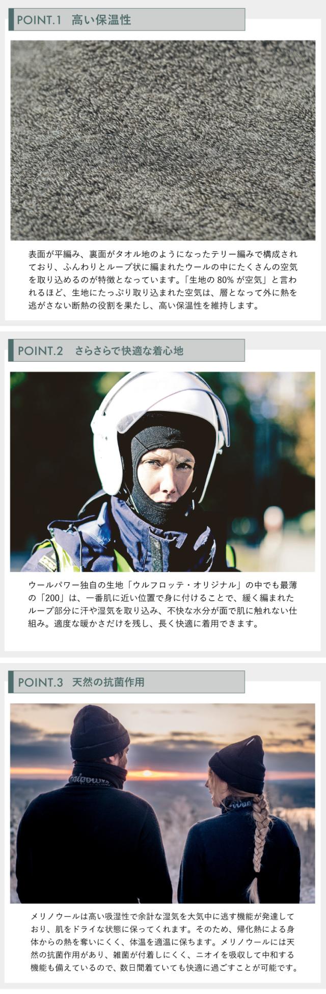 【日本正規代理店】洗濯機で洗えてお手入れ簡単!高品質のメリノウールを使用した保温性抜群のウールウェア!チクチクしないソフトな肌触りや天然の消臭効果、吸湿速乾で機能性も抜群!