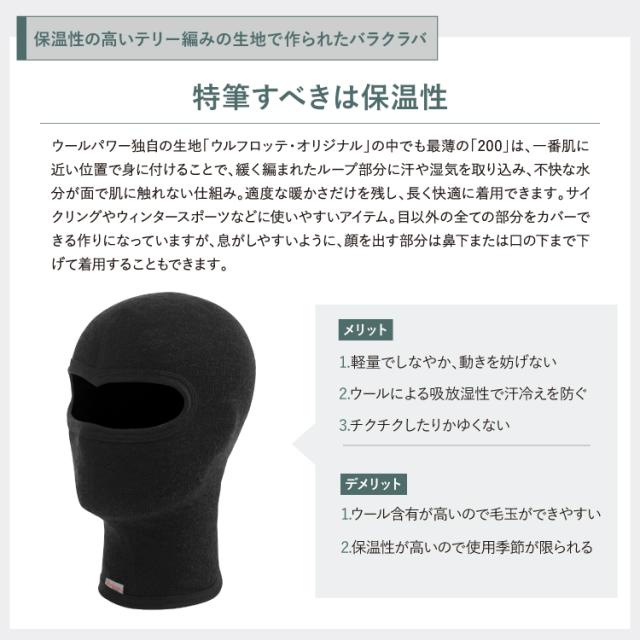 ウールパワー バラクラバ 200 Woolpower | 目出し帽 バラクラバ 男女兼用 防寒 フェイスマスク インナーキャップ スノーボード スキー スノボ サバゲー サイクリング 防寒着 吸汗速乾 蒸れない ウール メリノウール 極暖 保温 防臭