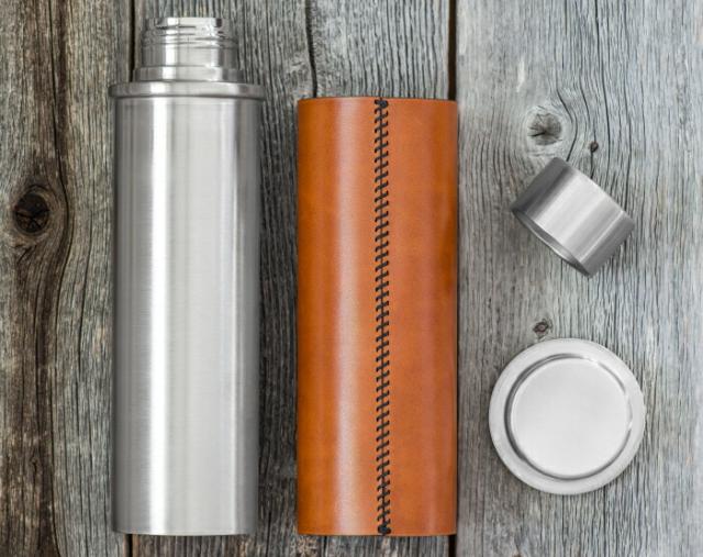 本体には匂い移りがしにくい高品質の18-8ステンレスを、ハンドルカバーにはTarnsjo Tannery製ベジタブルタンニンレザーを使用したウォーターボトルです。