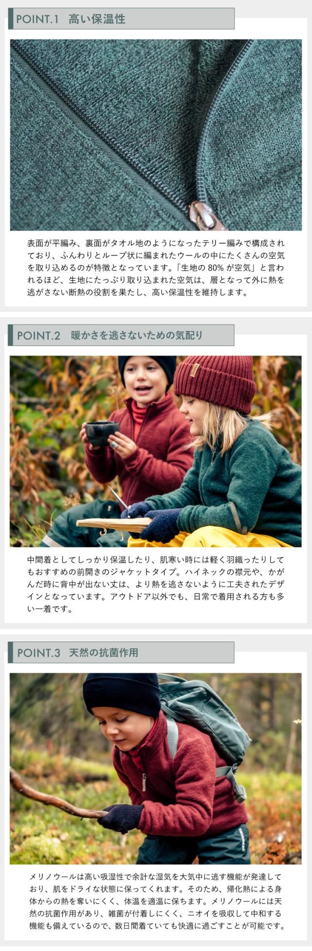 ウールパワー キッズ フルジップジャケット 400 Woolpower | 子供服 キッズ ベビー ベビー服 ニット トップス 男の子 女の子 長袖 防寒 吸湿速乾 防臭 メリノウール