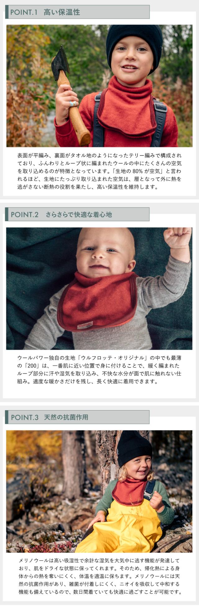 ウールパワー キッズ モックタートルネック 200 Woolpower | よだれかけ ネックウォーマー 子供服 キッズ ベビー ベビー服 ニット 男の子 女の子 長袖 防寒 吸湿速乾 防臭 メリノウール