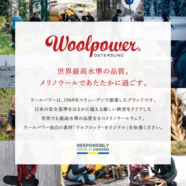 スウェーデン北部にある街、エステルスンド。「ウールパワー」は50年ほど前に、この自然がとても美しい土地で創業しました。当時から流行に左右されないプロダクトを国内の自社工場で作ることにこだわり、スウェーデン品質の誇りと責任のもと、熟練の担当者による質の高い製品づくりを続けているメリノウールウェア専門ブランドです。最も高品質とされるメリノウールの中でも17~23ミクロンの極細繊維を使用し、ウールパワー独自の生地「ウルフロッテ・オリジナル」を開発。抜群の保温性を持ったチクチクしづらいウールウェアを完成させました。一度着用すれば、ソフトな肌触りや天然の消臭効果といった、ウール本来の機能性の虜になるはずです。