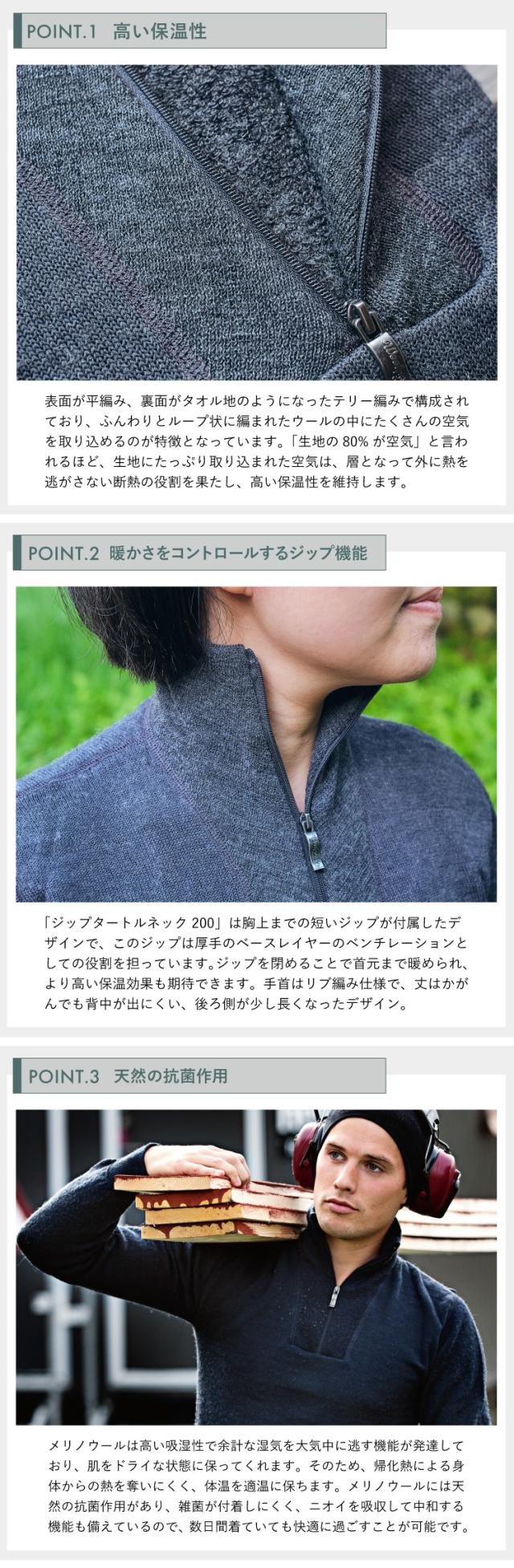 ウールパワー ジップタートルネック200 Woolpower | 防寒 インナー ベースレイヤー ユニセックス ヒートテック 肌着 下着 防寒着 薄手 吸汗速乾 ウール メリノウール 極暖 レディース メンズ 長袖 保温 あたたかい 暖かい 防臭 無地 さらさら